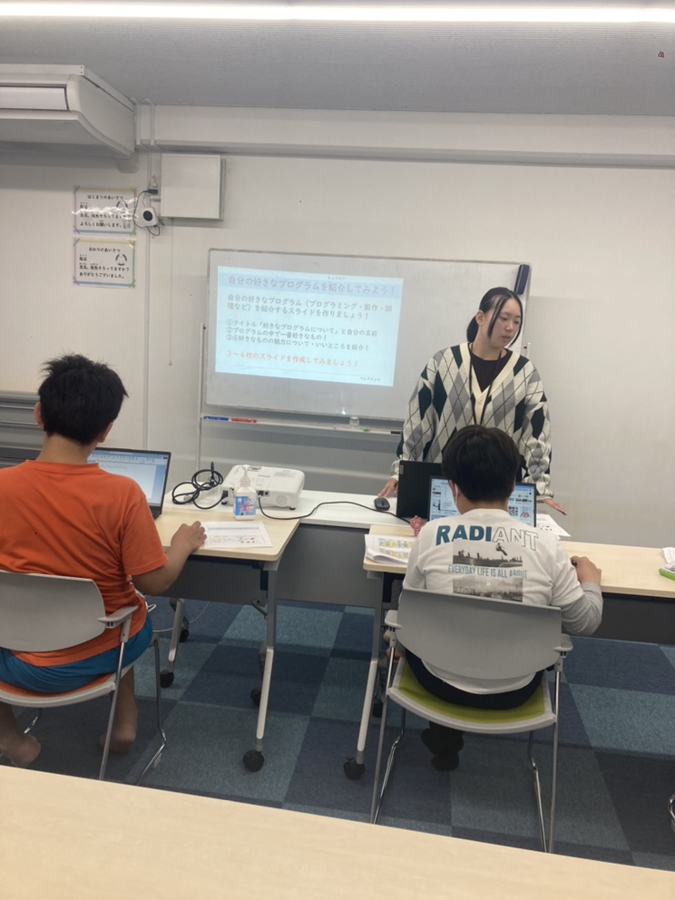 今まで行ったプログラムを元に、自分の好きなプログラムをパワーポイントに作り出しています。