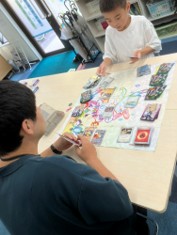 自分たちのデッキを持ってきたり、教室のカードを使って対戦をします。