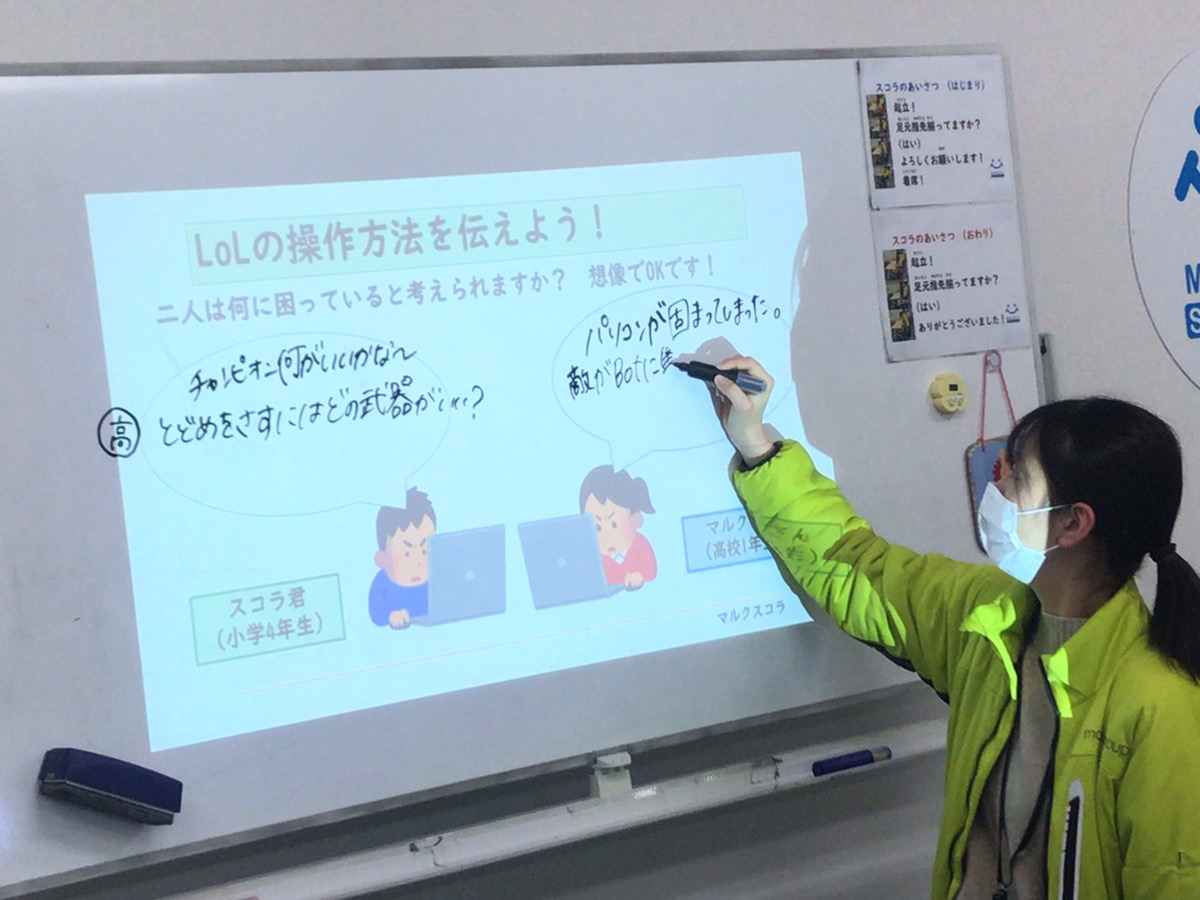 今回は助け合いの場面として、『ゲームの操作方法が分からない生徒さんがいた時』を想定して考えていきました。