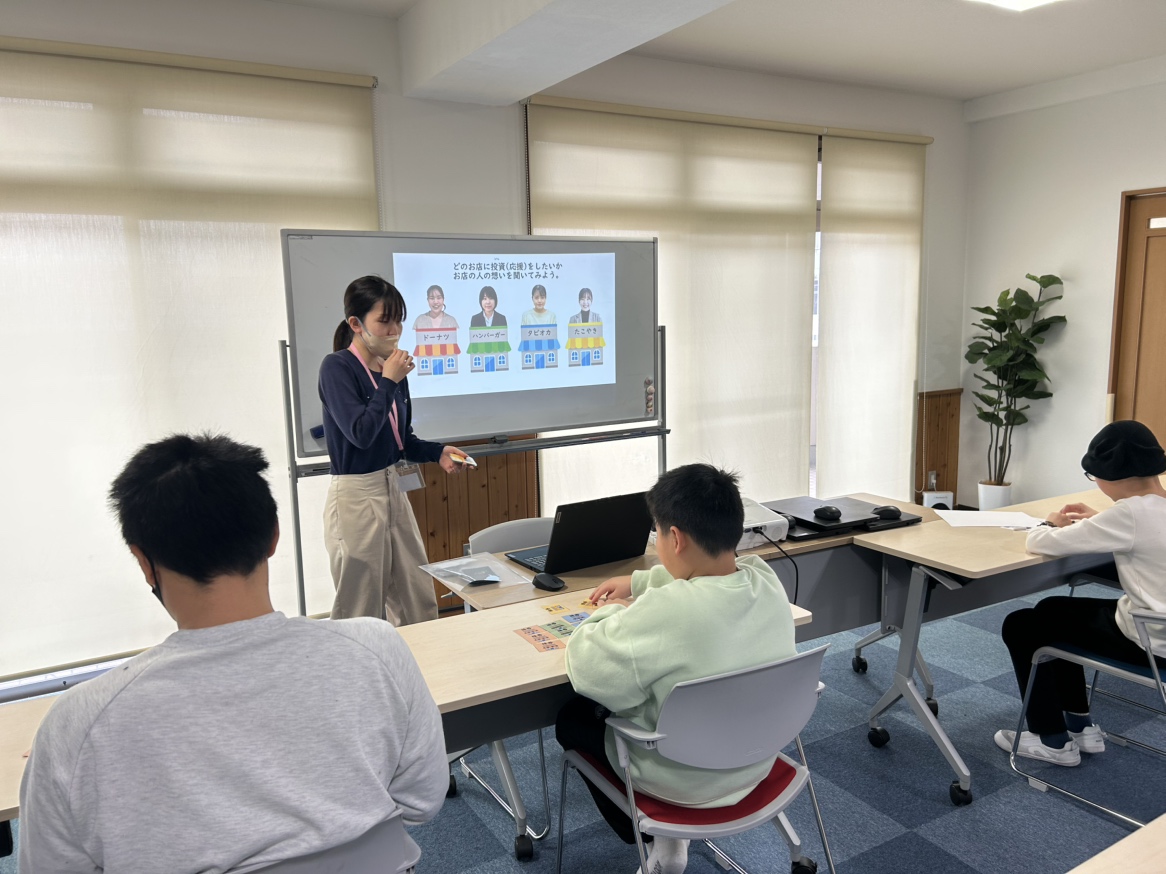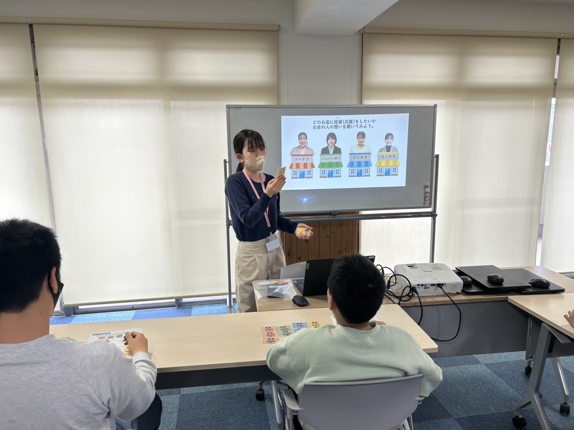生徒さん1人1人に10枚の株券をお渡しし、応援したいお店に投資をしていただいたのですが、