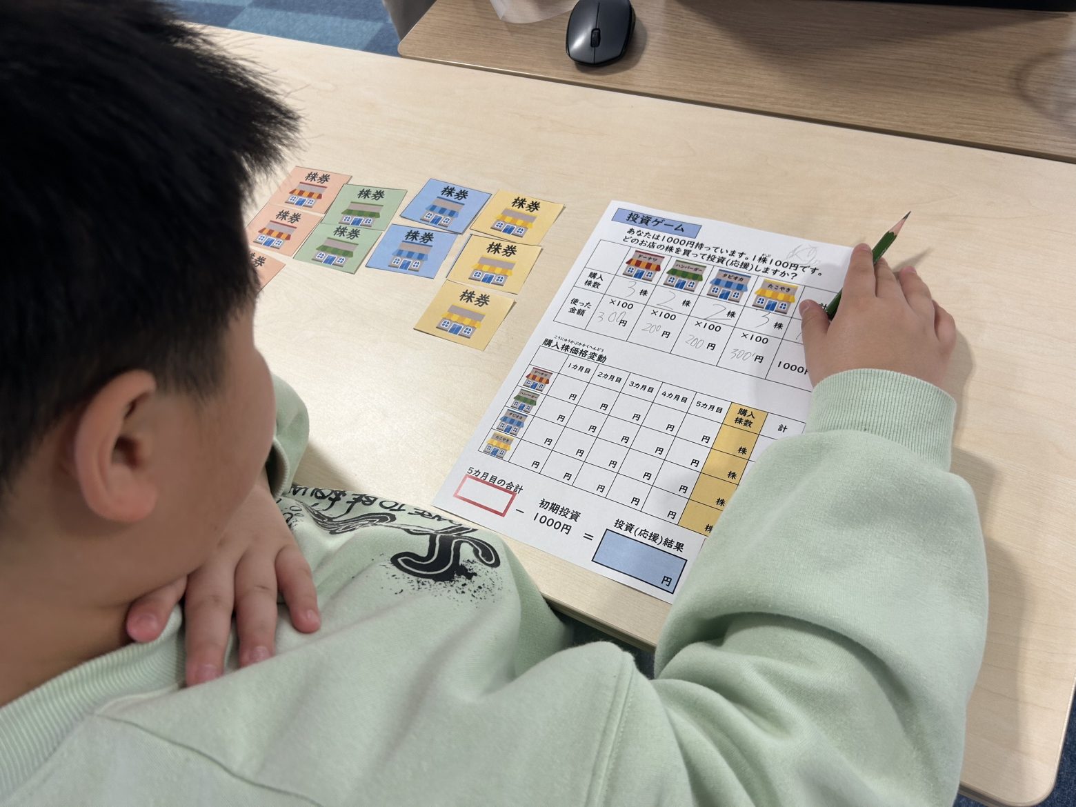 本日のプログラムでは、投資の実践を行い、計画的なお金の使い方を学んでいきました。