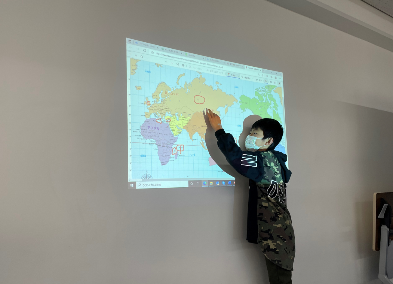 脳トレでは言われた国名を地図から探し出すクイズを行いました。