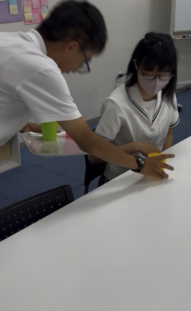 スタッフ役とお客様役に分かれて取り組んでいます。