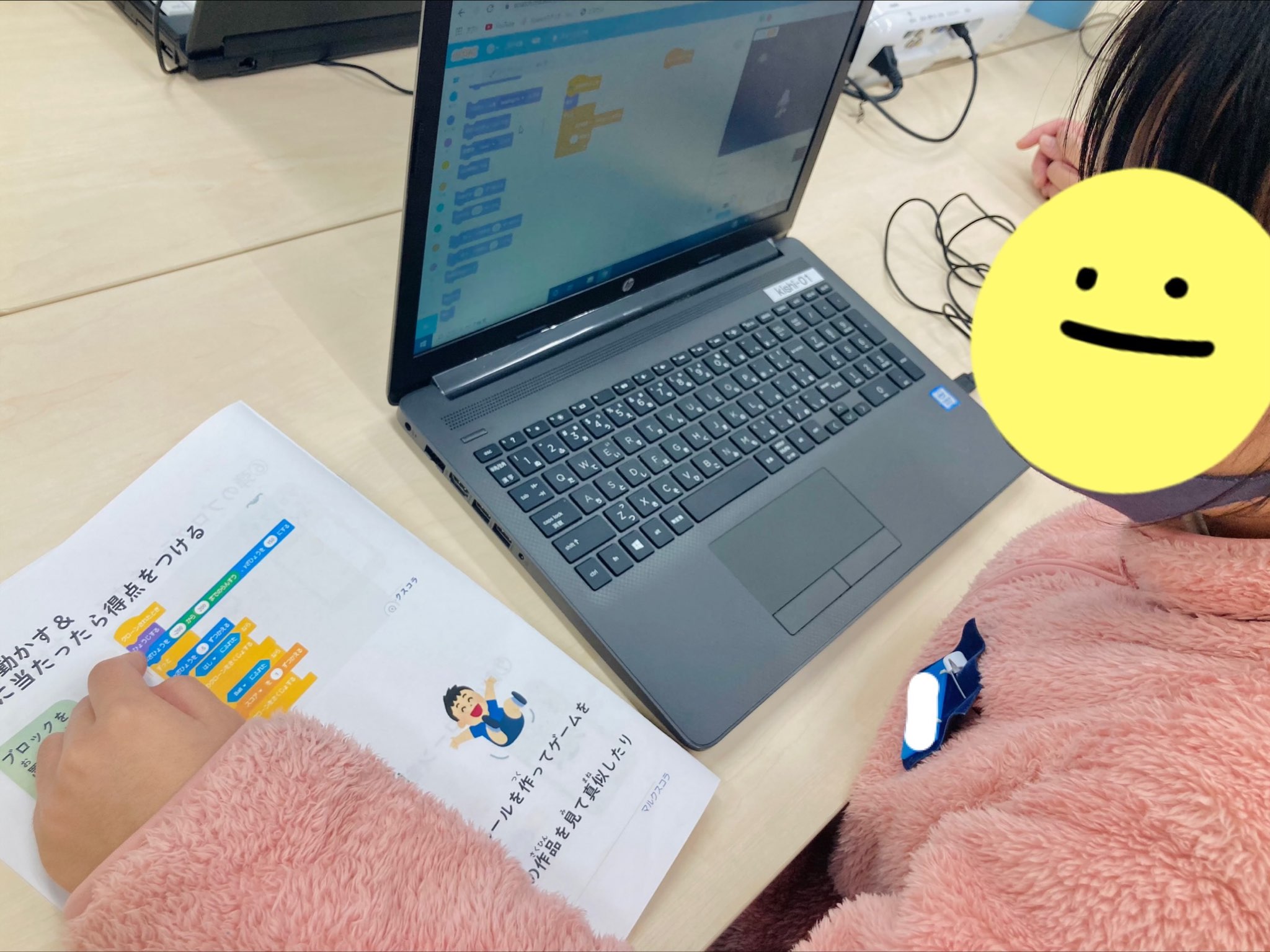 普段は手順書を見ながらお手本通りに進めていますが、今日は操作に慣れてきた生徒さんが多かったので、どのブロックを組み込むかを自分でイチから考えてみます。