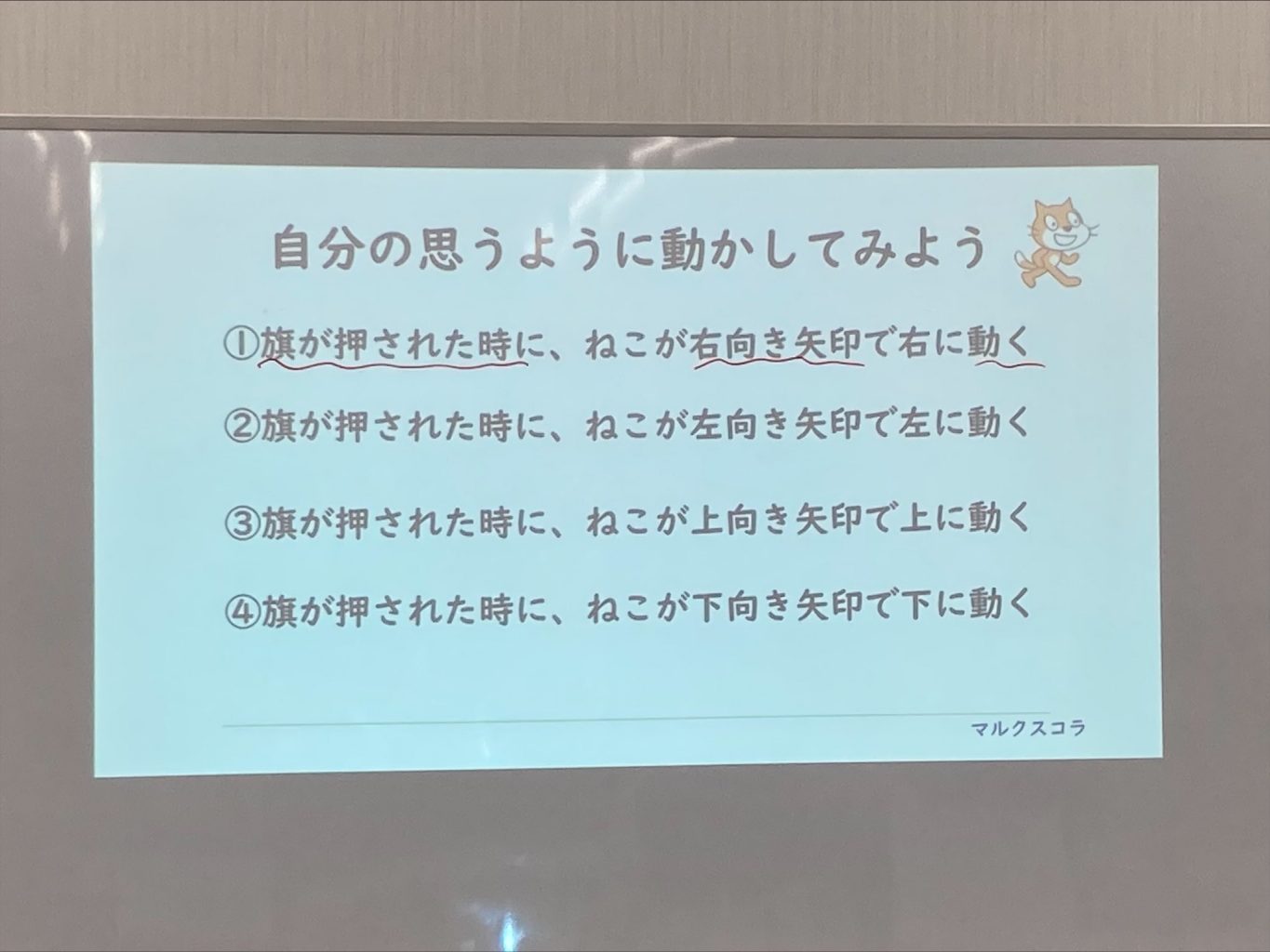 マルクスコラの各教室で人気のプログラミング。手順書通りに作成できた次のステップとして、自分で考えた動きを再現できるようになれば、また楽しみが広がります。