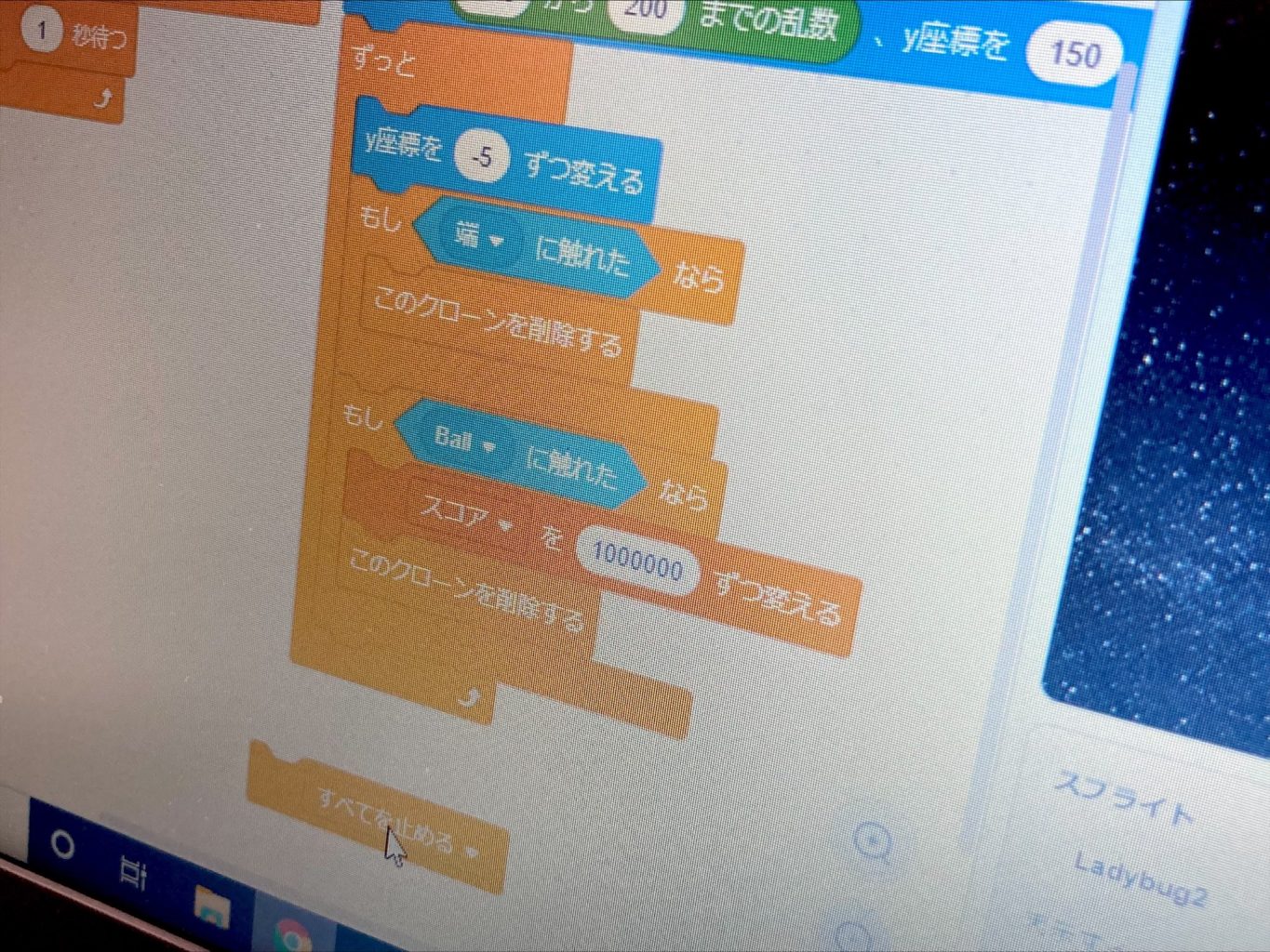 アレンジが得意な生徒さんは、敵を倒したら【100000点】が入るように工夫していました!