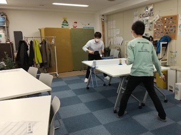 脳トレが始まる前に、スタッフと一緒に卓球をしました🏓