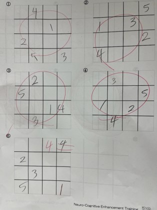 午前中は、兵頭さんと脳トレです!12マスにランダムに配置された数字の位置を覚えるというものでした。