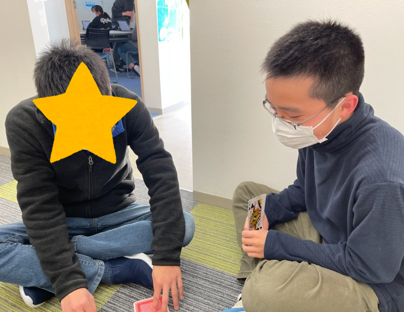 アイスブレイクで、ババ抜きをしていて最後なかなか決まらないという場面です(笑)