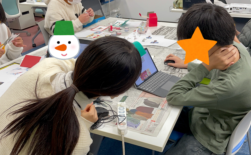 マスキングテープを使ってクリスマスツリーを作る生徒さんや、
