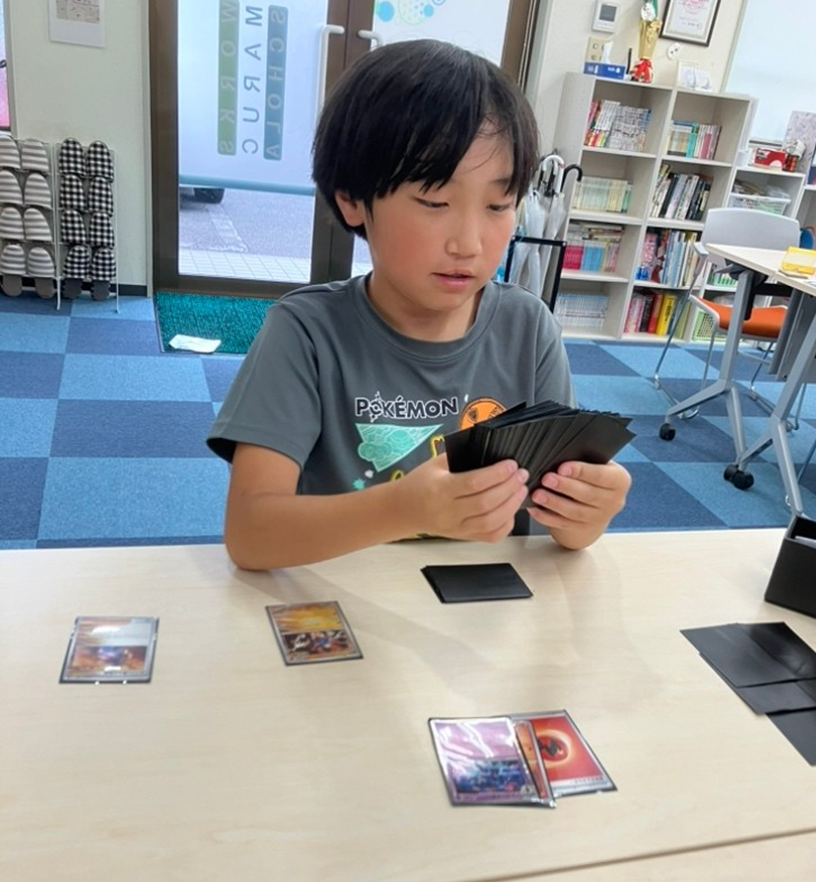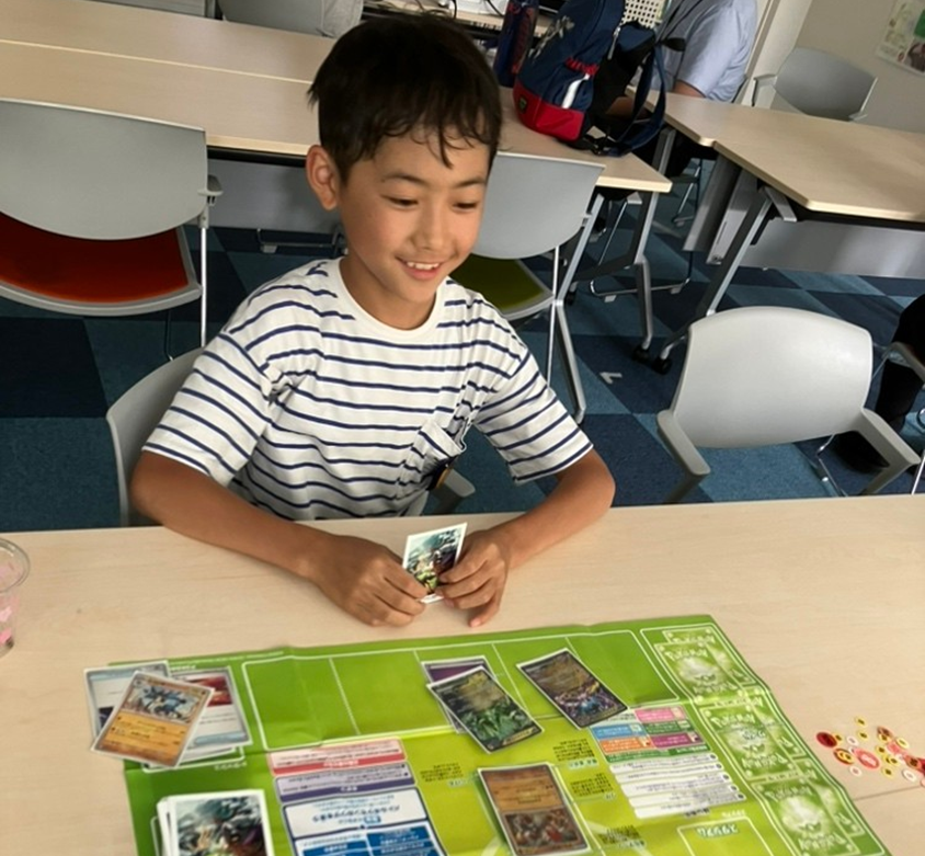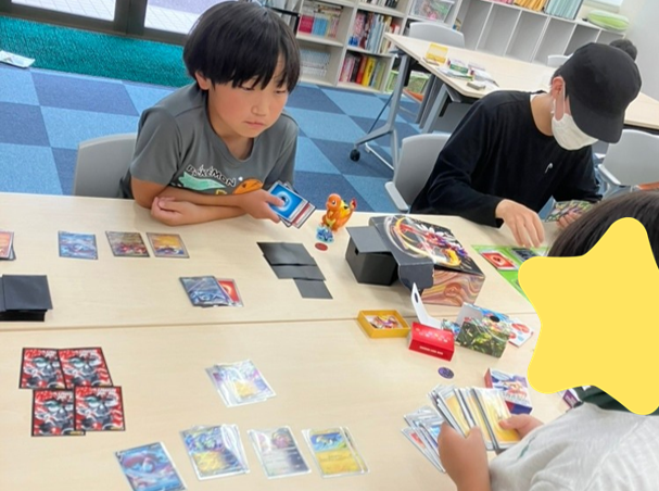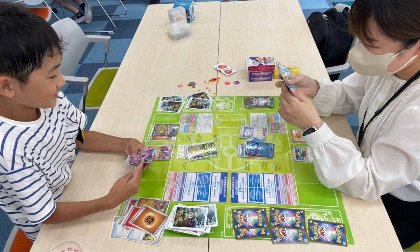 好きなポケモンの話をしたり、ポケモンカードの対戦を通して、幅広い年齢の子と関わったりなど