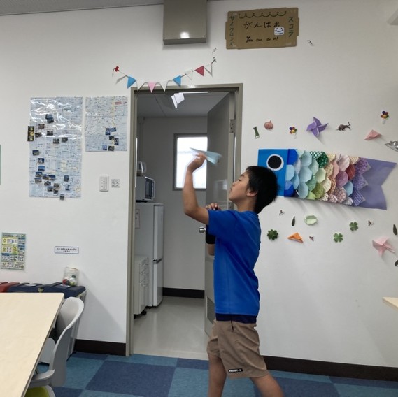 デジタルデトックスの時間では、他の生徒さんと協力して紙飛行機を作ったり、静かに漫画を読んだりされていました。