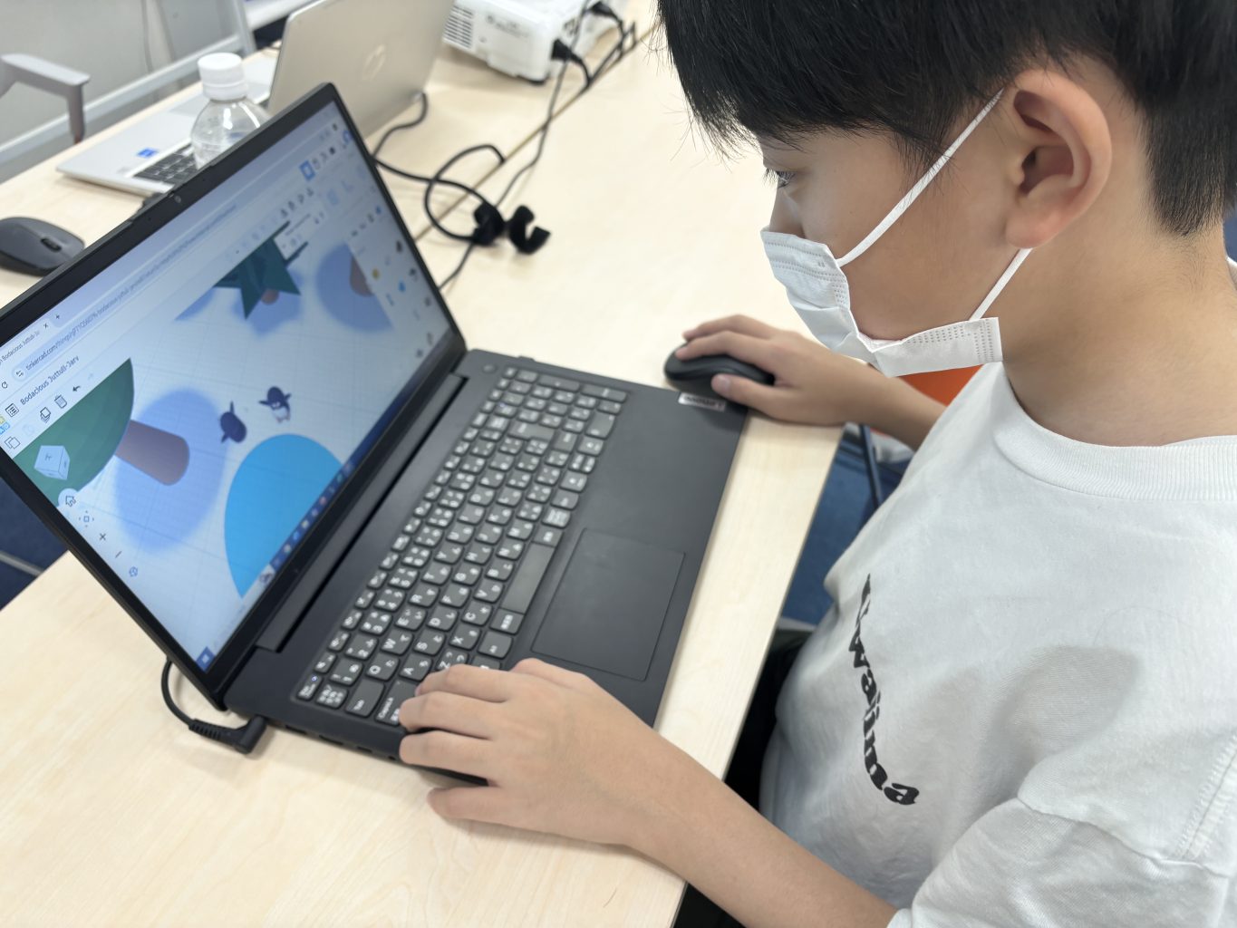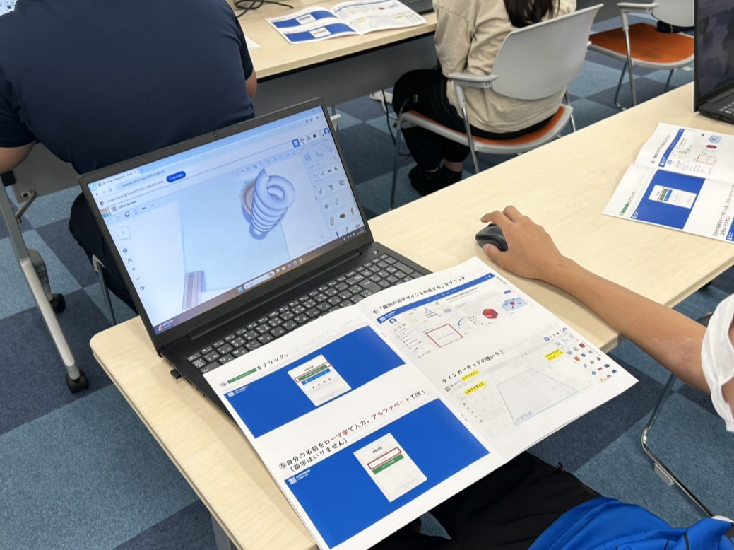 モデリングのサンプルとして準備されている物体を出して操作を試している生徒さんのほか、偶然見つけた面白い形から「そうめん流しみたいにしてみよう」と発想を得ている生徒さんもいました。