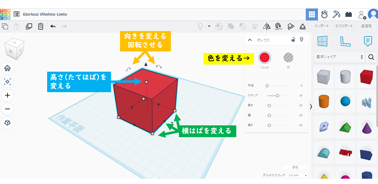 3Dモデルの操作には、縦・横・高さ・接地面など、たくさんの要素を考えながら作り進めないといけません。