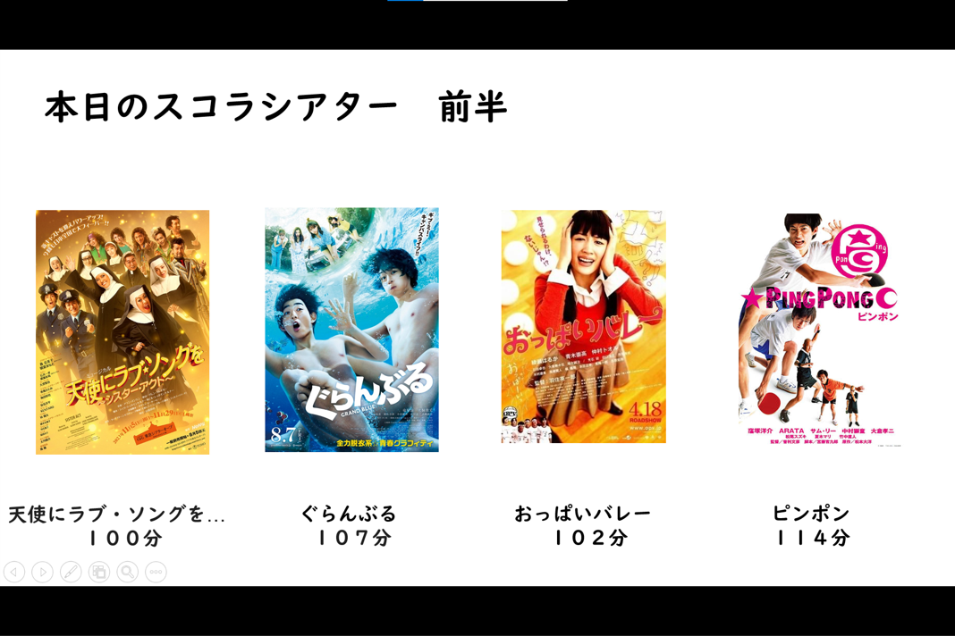 本日のプログラムは「自分では進んで見ないけど、見たら面白い作品をみんなで見て感想を語ろう✨」