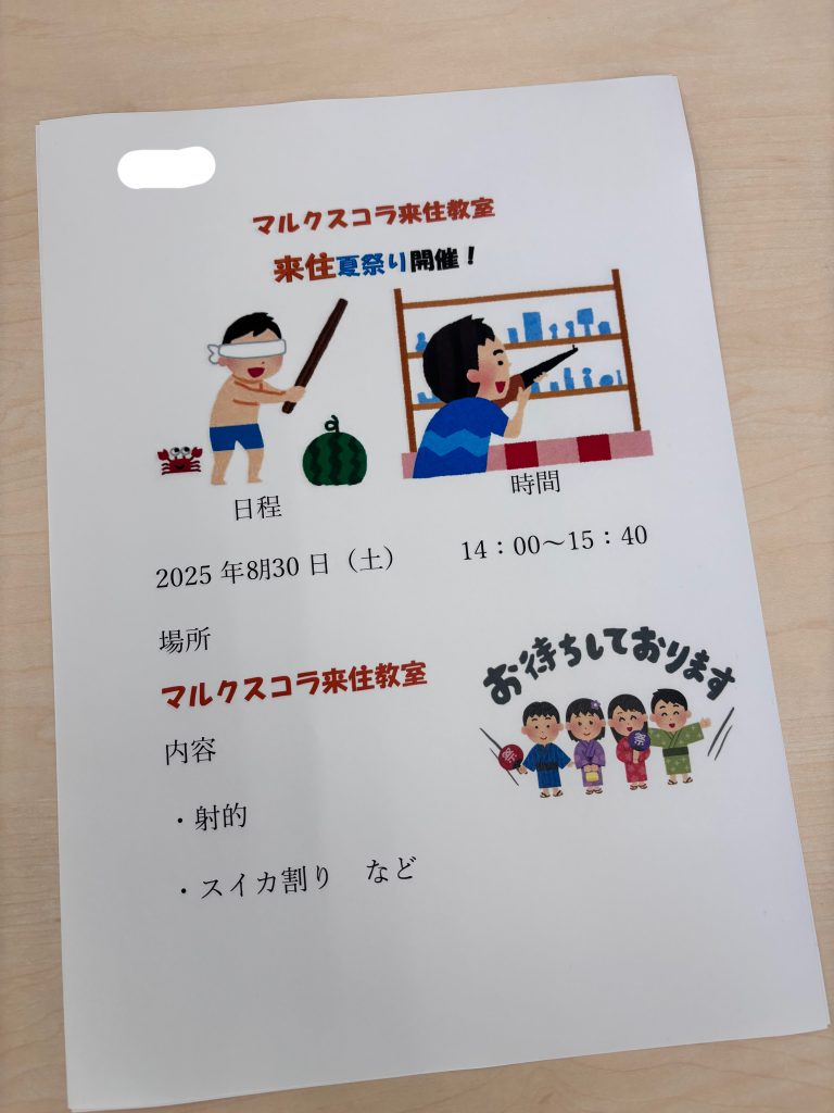 8月下旬に、来住教室にて生徒さん企画の夏祭りが控えています!