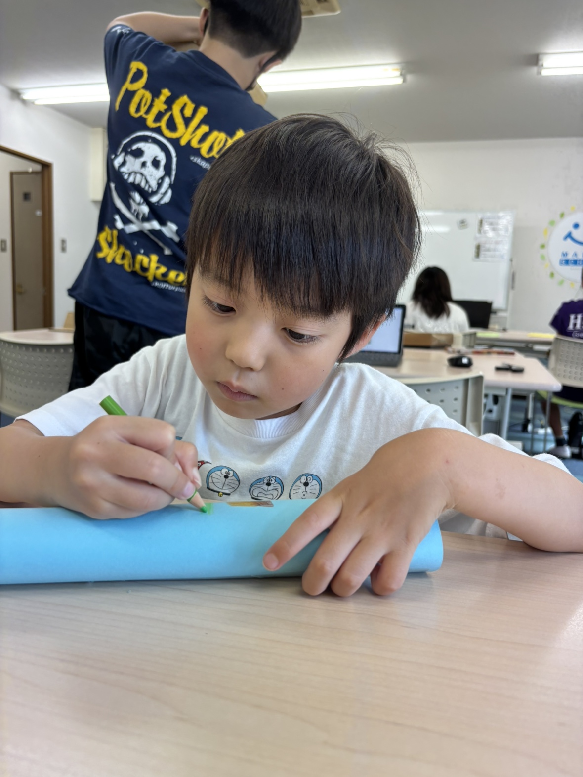 射的担当は、割りばし、ペットボトルなど様々な材料を試しながら銃を作りました🔫