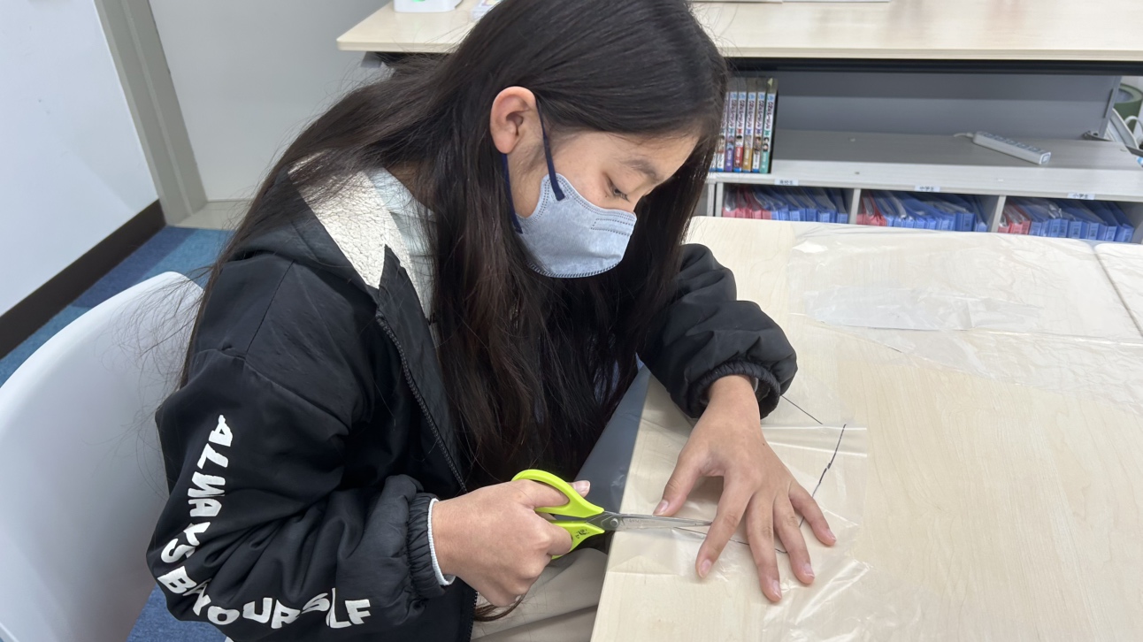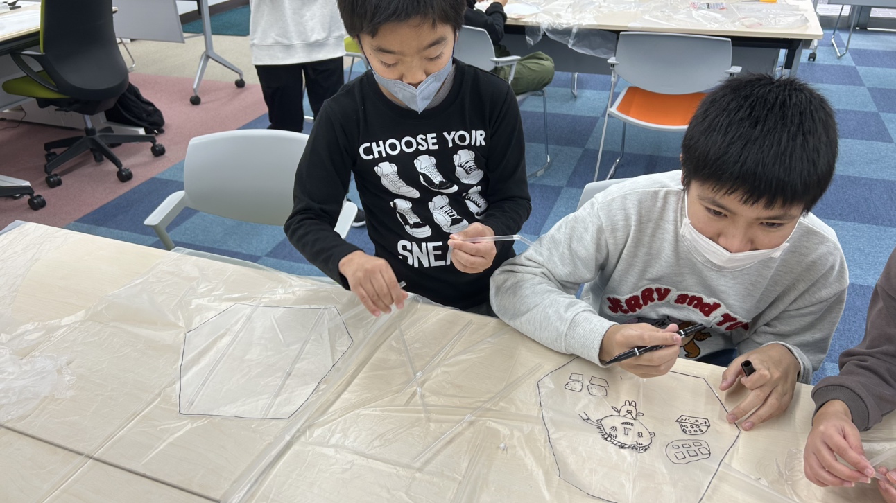 ビニール袋に好きなイラストや画像を入れてオリジナルの凧が出来上がりました。