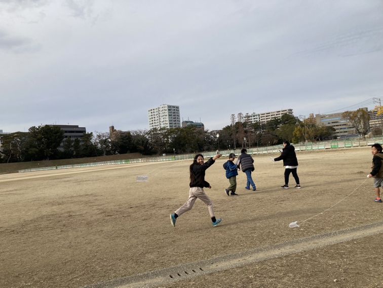凧あげだけでなく、なわとびやバドミントン、鬼ごっこなど全力で公園遊びを体を楽しみました。