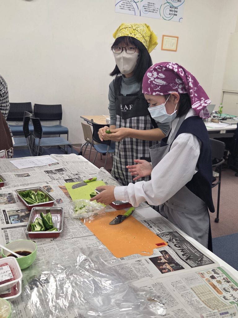 ピーマンの種抜き、野菜のカット、限られた時間の中で