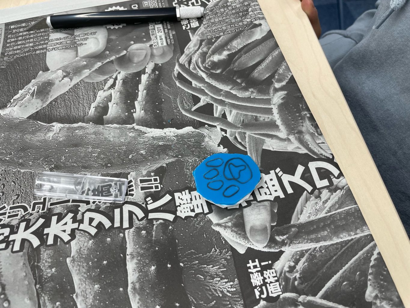 図案が完成したら、いよいよ消しゴムを彫る作業の開始です。