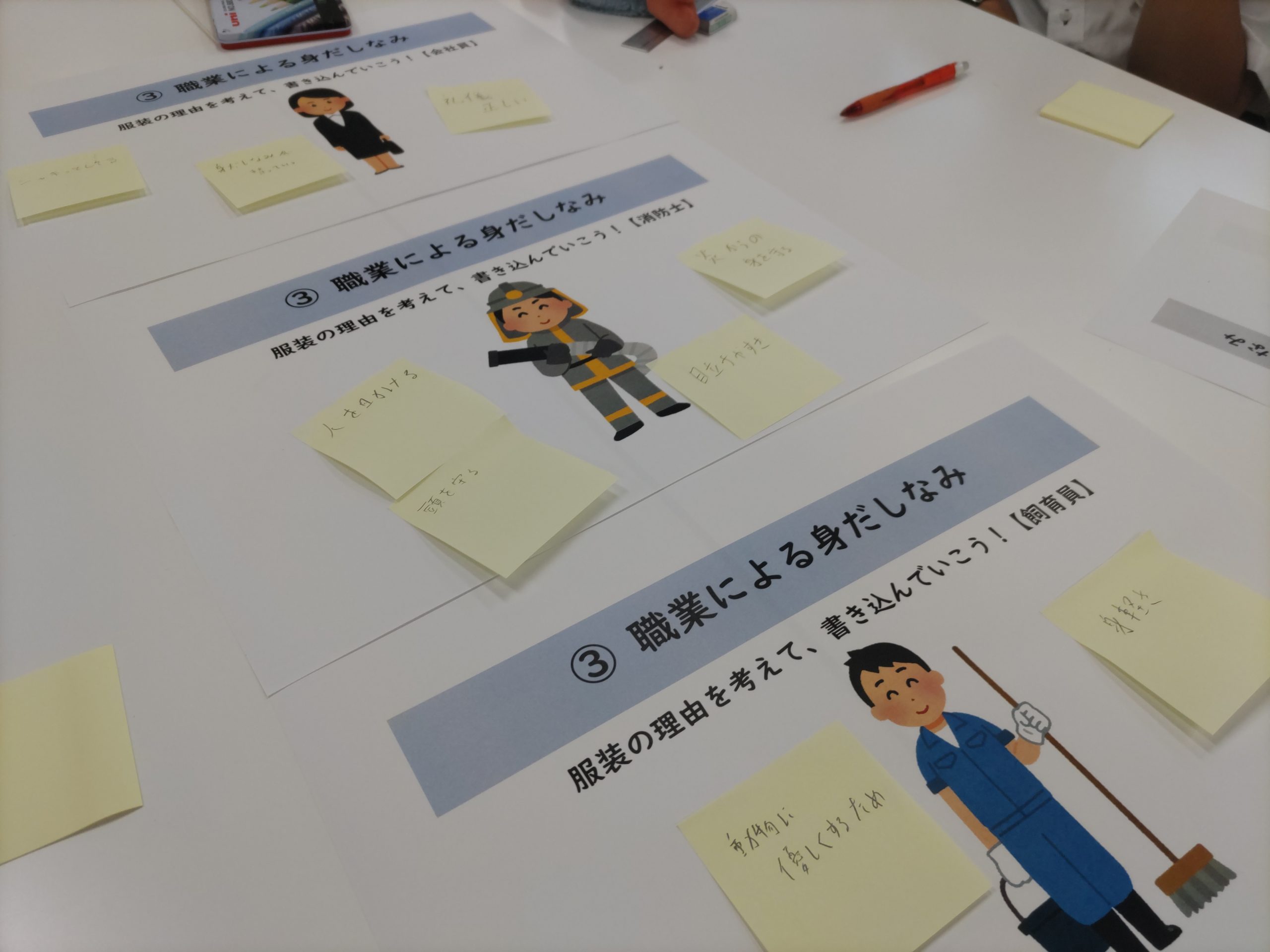 他の生徒さんからは、調理実習では爪を切ること、体育では短パン半袖の動きやすい服装になることなど、自分たちの経験の話を伝え合っていました。