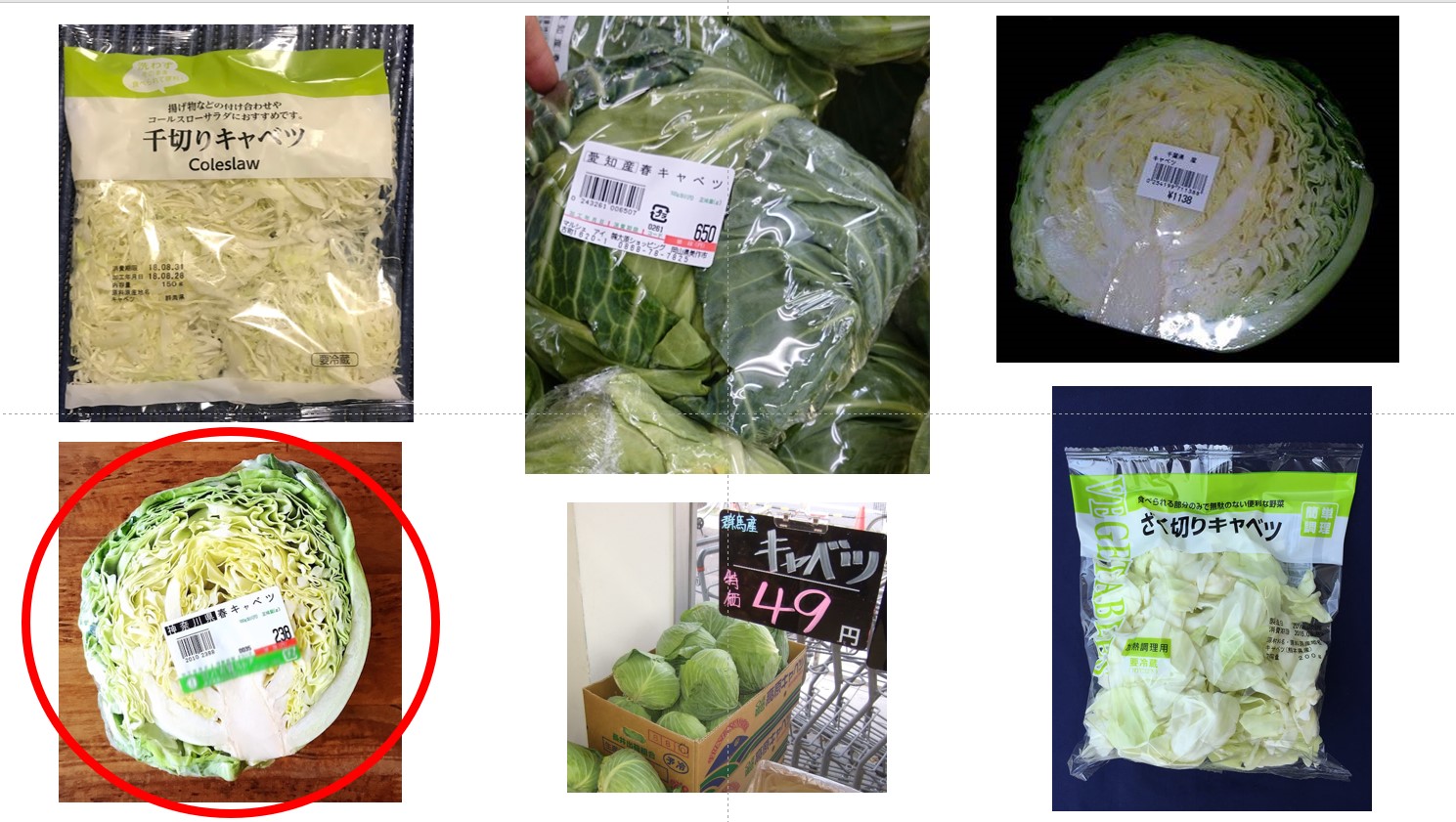次に、様々なキャベツの写真の中から丸を付けたキャベツを説明していただきます。