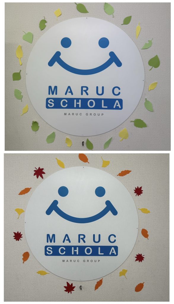 昨日、余戸教室のスコラマークの周りを夏仕様から秋仕様に…🍂
