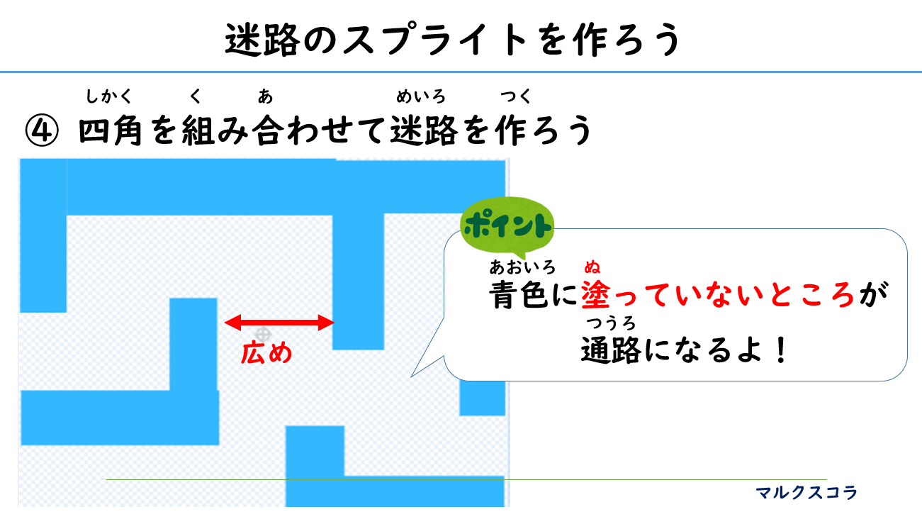 お手本を見ながら作る場合は、迷路ゲームの作り方をお伝えしております☺